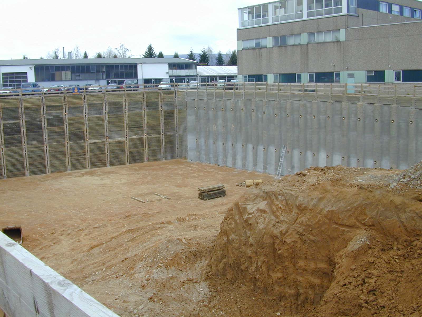 Vor der Wand-Pfähle werden überwiegend an Stellen mit beengten Platzverhältnissen als Baugrubensicherung eingesetzt – z.B. in unmittelbarer Nähe zu Nachbarhäusern.