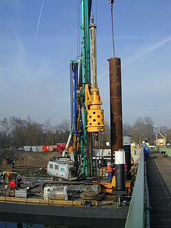 Systemlösung BA I: | Pfahlgründung DN 880 mm bis 17 m mit Pfahlfussaufweitung auf DN 1.750 mm; HDI Unterfangung |
